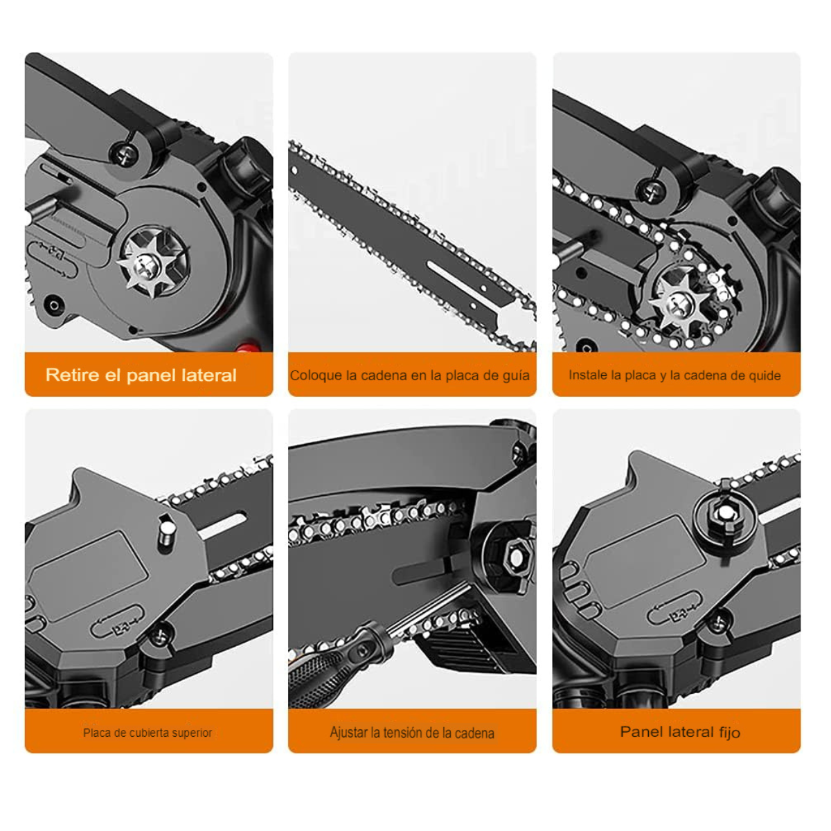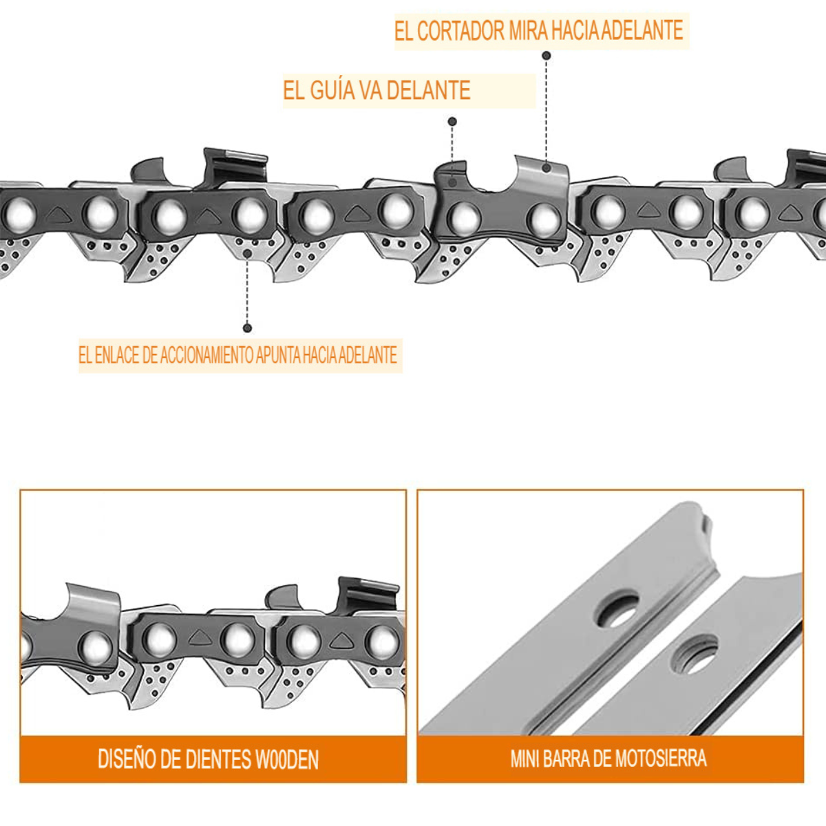 - Corte Preciso: La configuración precisa de los dientes de la cadena garantiza cortes limpios y uniformes en una variedad de materiales, desde madera dura hasta ramas más delgadas, proporcionando resultados profesionales en cada tarea.