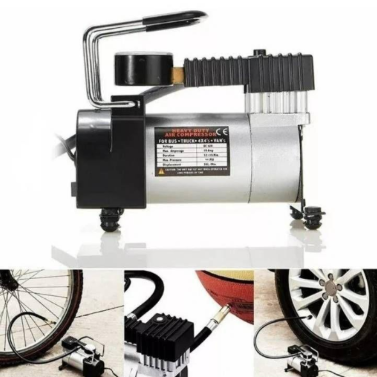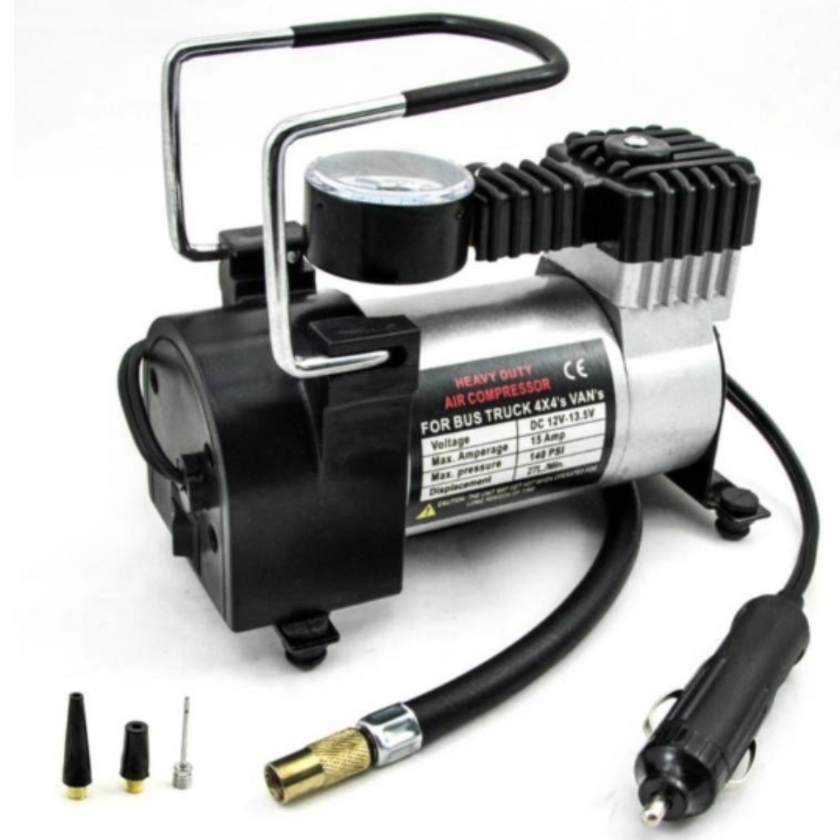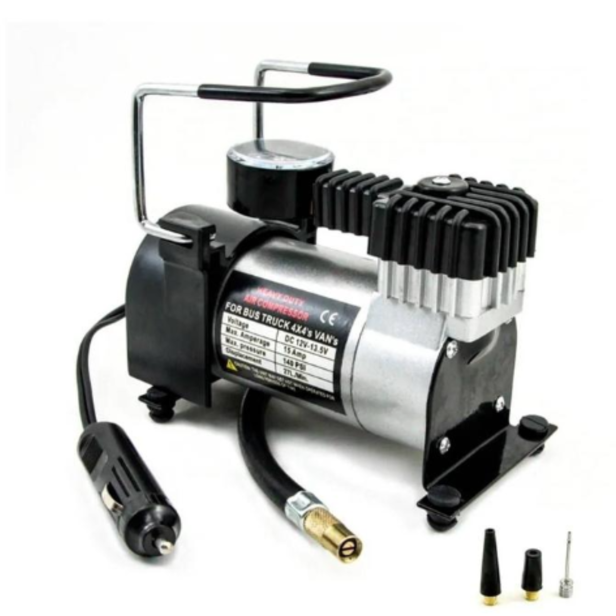 - Bomba de Aire Multiusos: Con un cable de alimentación de 18 pulgadas y tres boquillas adicionales, esta bomba portátil es versátil, adecuada para automóviles, motocicletas, bicicletas, pelotas deportivas o más.
