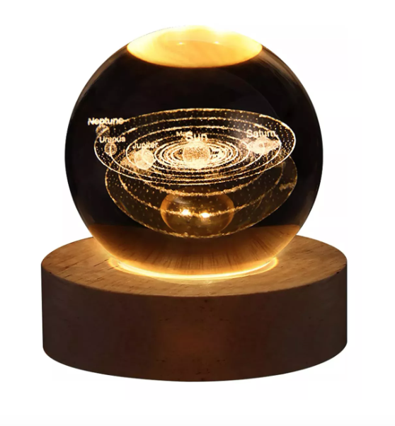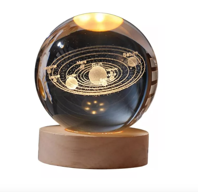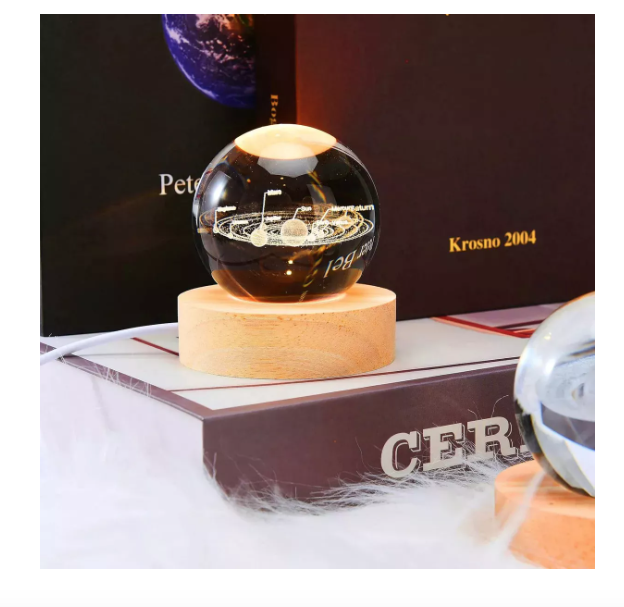 Este producto es una lámpara nocturna planetaria con forma de bola de cristal, con un patrón 3D muy claro. Hecha de madera, está exquisitamente elaborada, añadiendo un toque artístico a tu hogar.