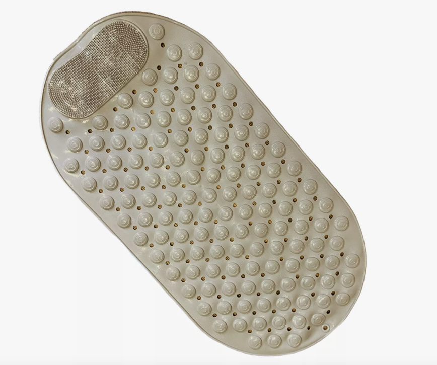 Alfombrilla de baño antideslizante, alfombrilla de ducha con limpiador de pies, ventosa y orificio de drenaje Especificación: Material: PVC Método de limpieza: secado en pared/enjuague. Tamaño: 34*68cm