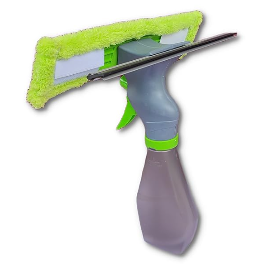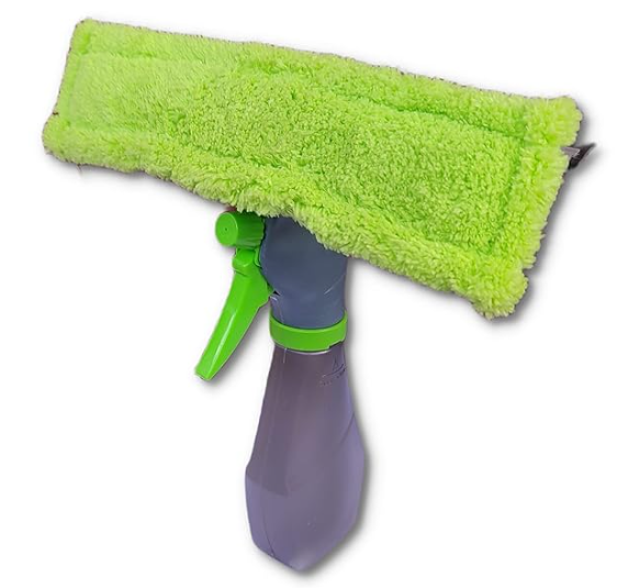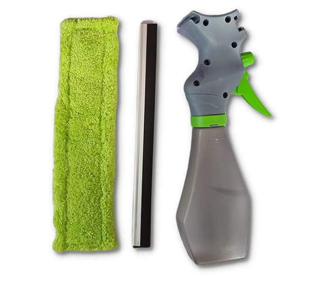 HERRAMIENTA DE LIMPIEZA 3 EN 1: la herramienta de limpieza de ventanas viene con una botella rociadora, una escobilla de goma y un cabezal de limpieza de microfibra Puede rociar, fregar y escurrir con una sola herramienta, sostenida en una mano. Simplemente llene la botella rociadora con agua o su limpiador favorito, frote la superficie con la lavadora de microfibra y luego seque a la perfección la escobilla de goma. La almohadilla de limpieza de microfibra extraíble se puede tirar en la lavadora según sea necesario para reutilizarla vez. El limpiacristales es liviano, lo que facilita su sujeción y uso durante perí prolongados. Perfecto para limpiar ventanas de vidrio, parabrisas de ó, espejos de baños, paredes de azulejos, mesas de café de vidrio y otras superficies.